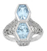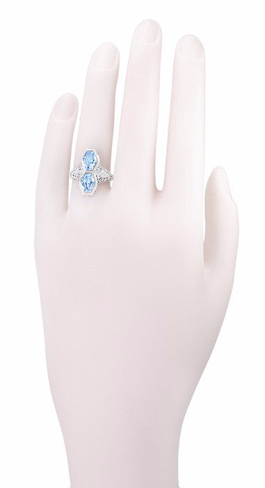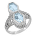 Love Duet Filigree 2 Stone Blue Topaz Vintage Statement Ring Design in Sterling Silver | Art Deco