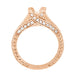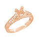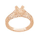 This timeless rose gold engagement ring mounting is crafted to order, and you can create your own custom heirloom rose gold engagement ring by adding a round diamond above, or you can have your own jeweler set your round or asscher cut stone in this ring.