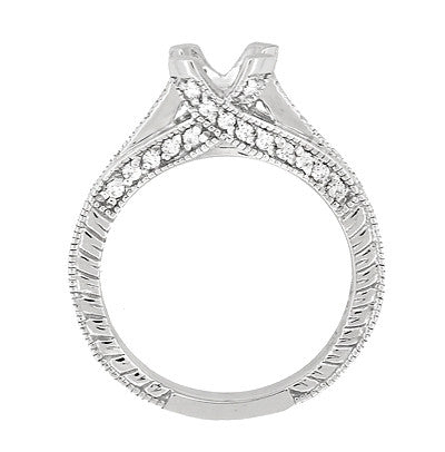 You can create your own custom antique design engagement ring by adding a certified natural or lab created diamond above, or have your own jeweler set your stone in this classic white gold round semimount engagement ring setting!