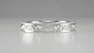 Inspired by 1920's jazz age Gatsby style, this handsome antique reissue wedding band in white gold features an authentic Art Deco geometric hand engraved floral fan pattern which encircles the entire ring, bordered with shimmery millgrain edging.