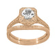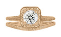 14 Karat Rose Gold Art Deco Engraved Wheat Thin Curved Wedding Ring