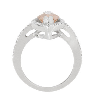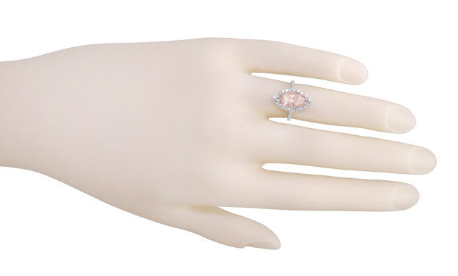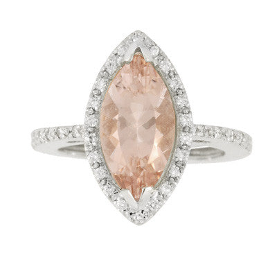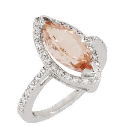 Mid Century Marquise Morganite Statement Ring with Diamonds in 18 Karat White Gold