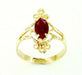 An eye pleasing delight, this beautiful Edwardian ruby ring in 14K yellow gold has rich hand finished filigree work and a shimmering round brillian...