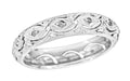 Vintage Edwardian Crescent Scalloped Filigree Gray Diamond Wedding Band in Platinum - Size 8 3/4