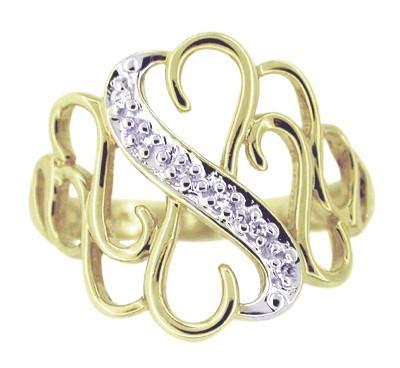 Scroll Hearts Right Hand Ring Set with Diamonds in 14 Karat Gold