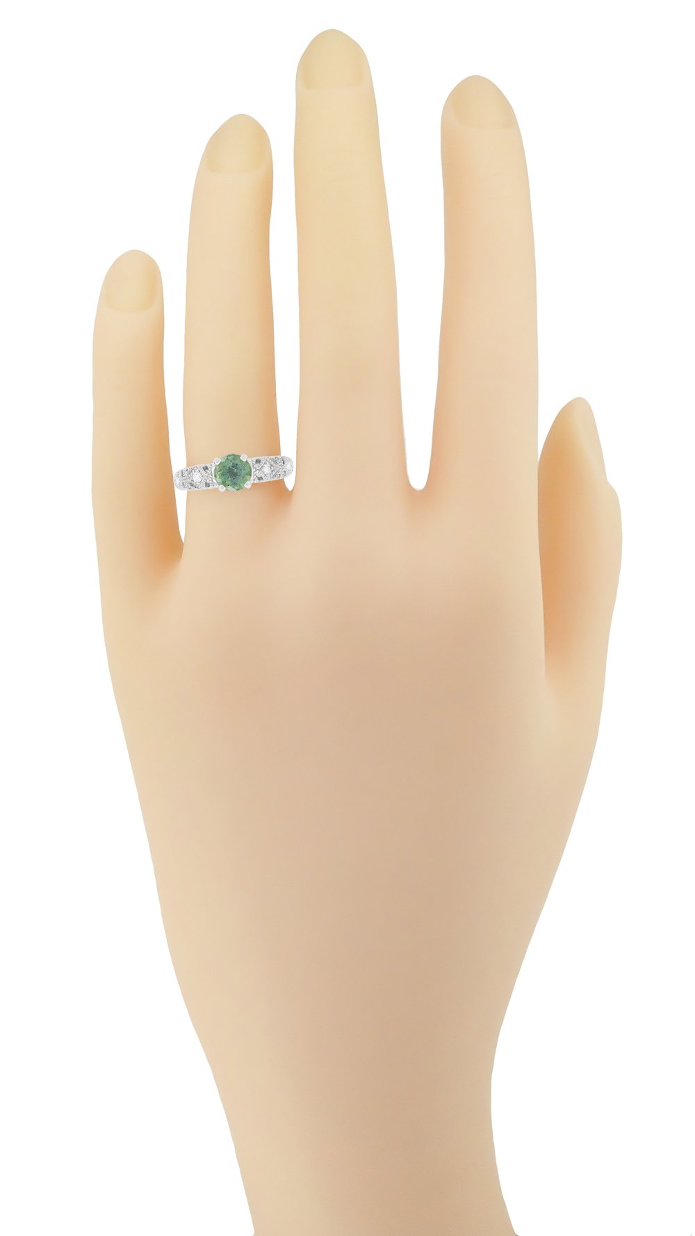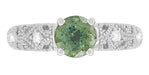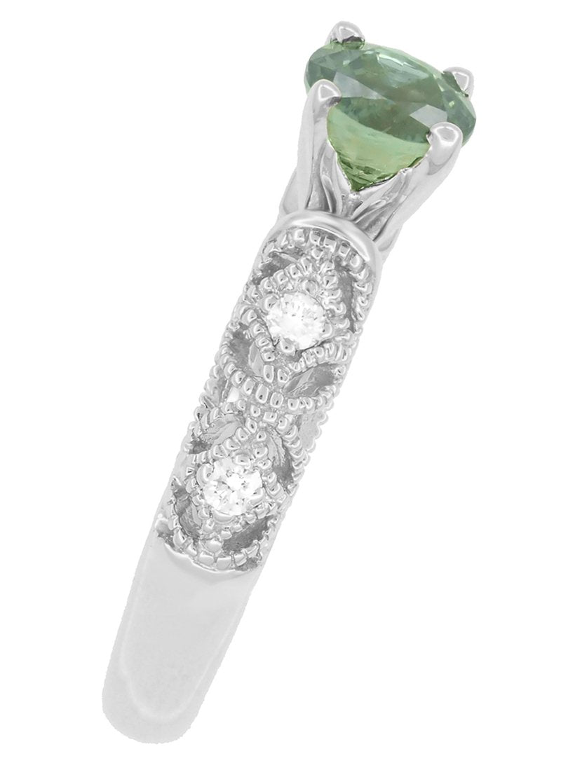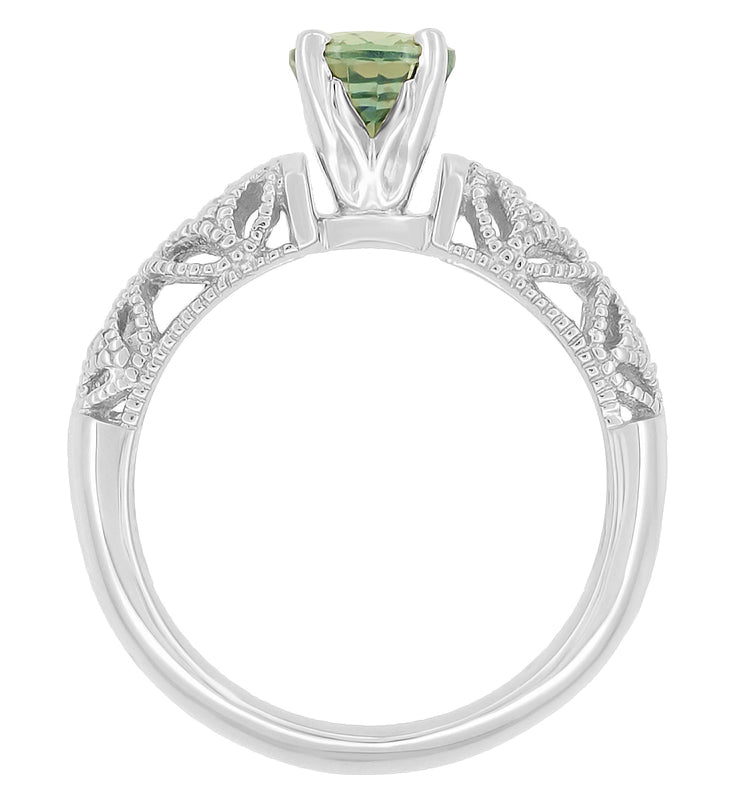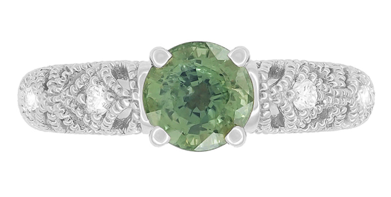 Freda Antique Inspired Filigree Green Sapphire and Diamond Engagement Ring in 14K White Gold