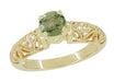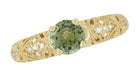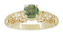 Art Deco Charlene Filigree Green Sapphire Engagement Ring in 14 Karat Yellow Gold with Side Diamonds