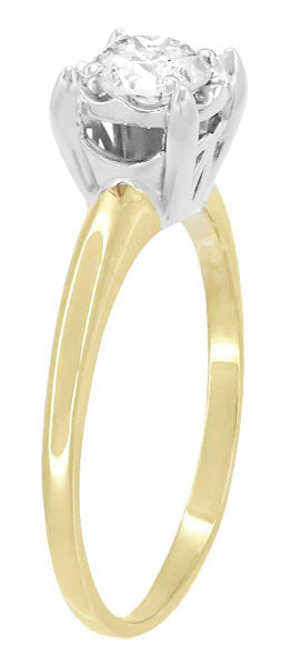 1950's Mixed Metals Illusion Solitaire Vintage Style 0.61 Carat Diamond Engagement Ring in 14 Karat Two Tone Yellow & White Gold