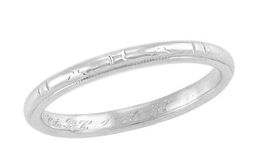 1920s Art Deco Vintage Carved Heirloom Wedding Band in 18K White Gold | 1.75mm Wide | Size 5.5