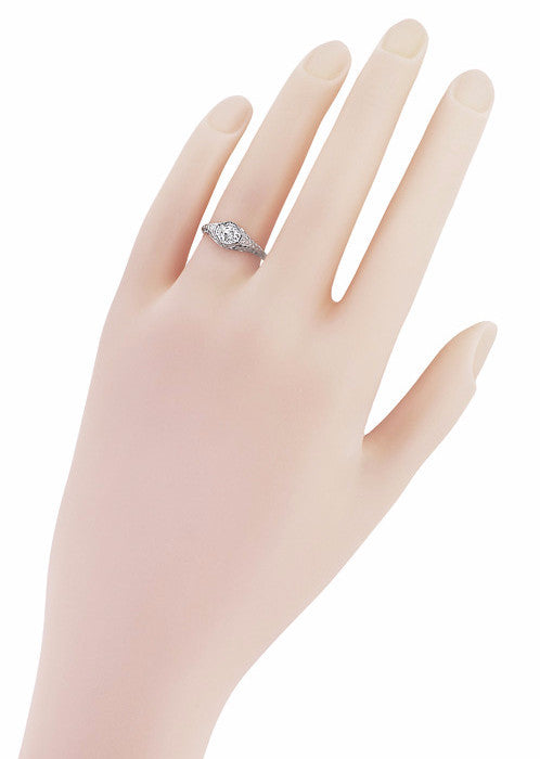 Art Deco 0.27 Carat Diamond Sunflowers Filigree Engagement Ring in 14 Karat White Gold