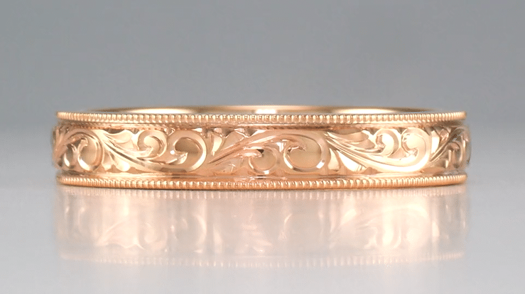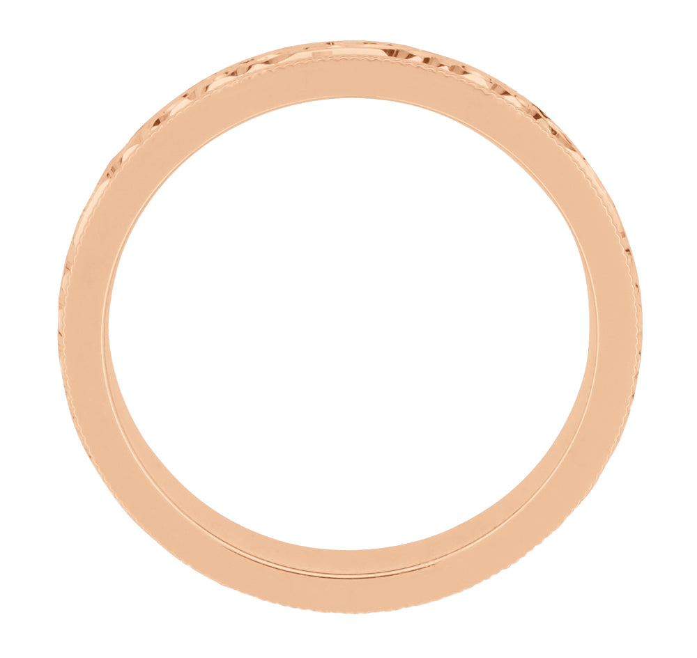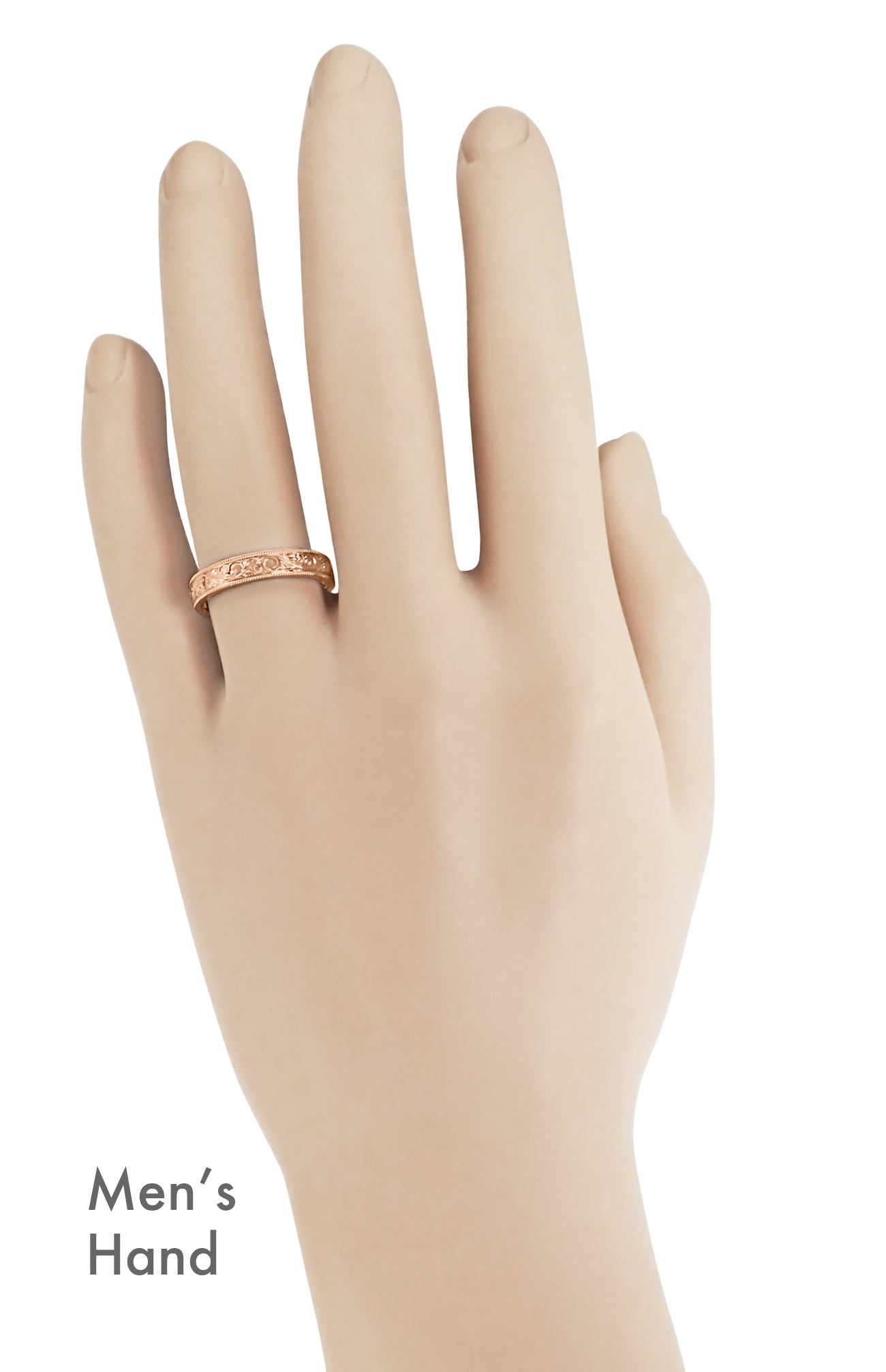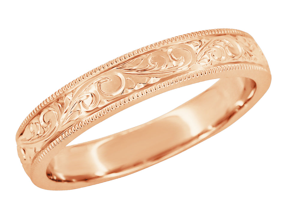 14K Rose Gold Antique Style Men's Victorian Carved Acanthus Wedding Band - 4mm