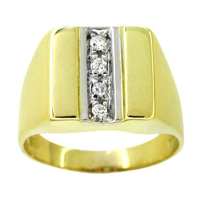 A wearable blast from the past in warm yellow gold, this handsomely fashioned vintage design Mid Century Retro Moderne men's diamond ring makes a c...