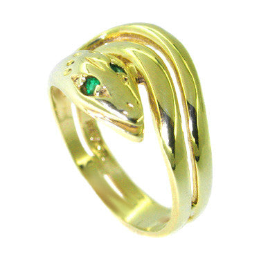 Victorian Snake Ring set with Emeralds in 14 Karat Gold