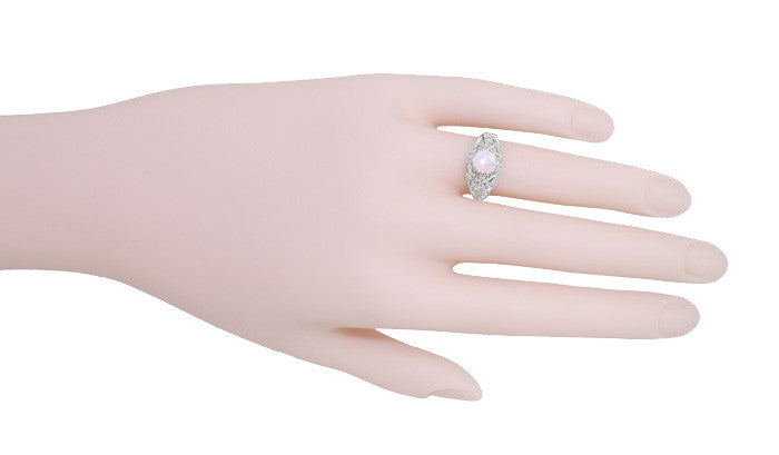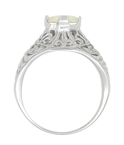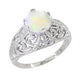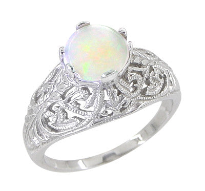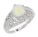 Edwardian Opal Filigree Ring in 14 Karat White Gold