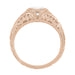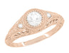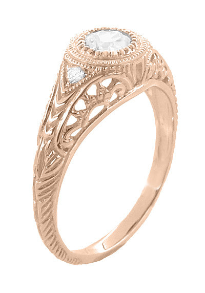 Art Deco Low Dome Filigree White Sapphire Engagement Ring in 14 Karat Rose Gold