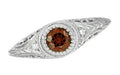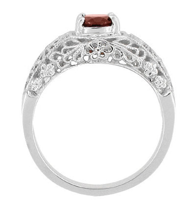 Art Deco Engraved Almandite Garnet and Diamond Filigree Engagement Ring in White Gold - 14K or 18K