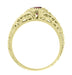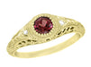 Artisan crafted in a classic replica vintage 1920's filigree design in your choice of 18K or 14K yellow gold, this timeless yellow gold garnet ring is intricately detailed with fine engraving and filigree openwork.