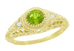 1920's Art Deco Yellow Gold Peridot and Diamond Filigree Engagement Ring