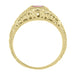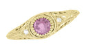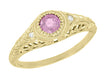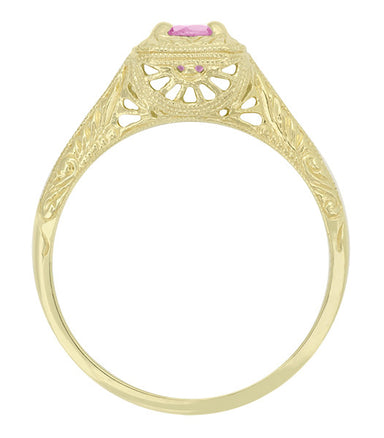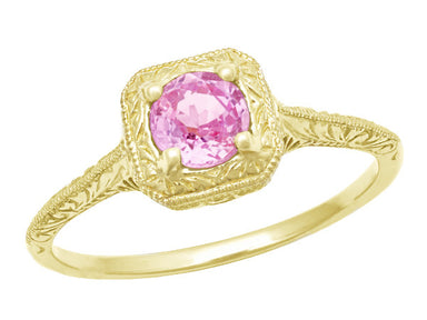 Yellow Gold Art Deco Engraved Pink Sapphire and Diamond Filigree Engagement Ring - 14K or 18K
