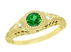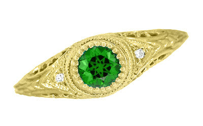 Art Deco Engraved Yellow Gold Tsavorite Garnet Filigree Engagement Ring with Side Diamonds