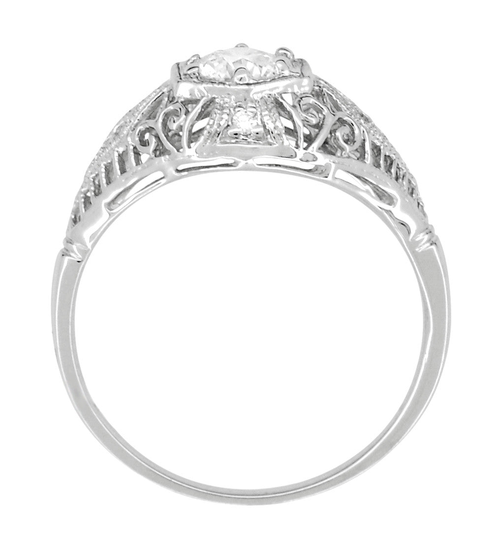 Edwardian Diamond Scroll Dome Filigree Engagement Ring in 14 Karat White Gold