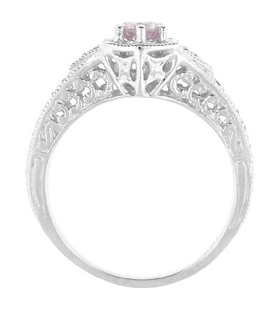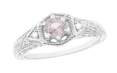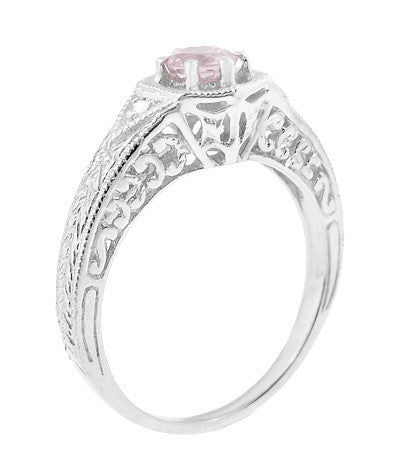 Art Deco Morganite and Diamond Filigree Engraved Engagement Ring in 14 Karat White Gold