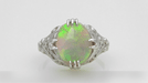 Art Deco Filigree Large White Opal Ring in 14 Karat White Gold