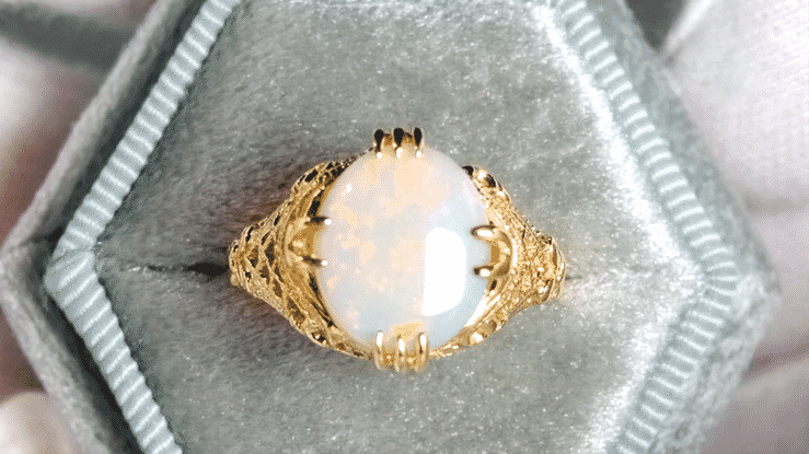 Art Deco White Opal Filigree Ring in 14 Karat Yellow Gold - October Birthstone