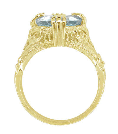 1920's Yellow Gold Art Deco 4.5 Carat Oval Aquamarine Filigree Ring