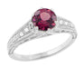 1920's Design Art Deco Raspberry Rhodolite Garnet and Diamond Filigree Engagement Ring in Platinum