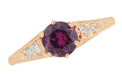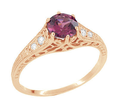 Rose Gold Art Deco Raspberry Rhodolite Garnet and Diamond Filigree Engagement Ring