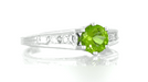 An exact reproduction of an antique original engagement band circa 1920, this exquisite classic peridot engagement ring has a timeless style which is sure to be cherished for generations to come!