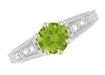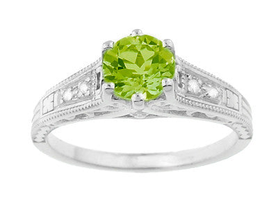Filigree Art Deco Peridot Engagement Ring in Platinum with Side Diamonds