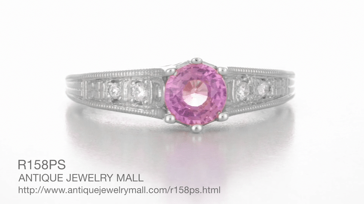 Art Deco Filigree Pink Sapphire and Diamond Vintage Style Engagement Ring in 14 Karat White Gold