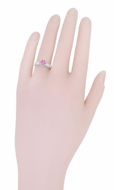 Art Deco Filigree Vintage Style Pink Sapphire and Diamond Platinum Engagement Ring