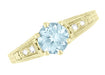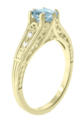 Art Deco Antique Style Aquamarine and Diamond Filigree Engagement Ring in 14 Karat Yellow Gold