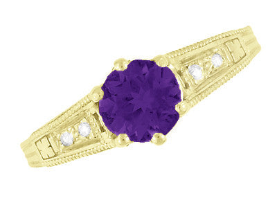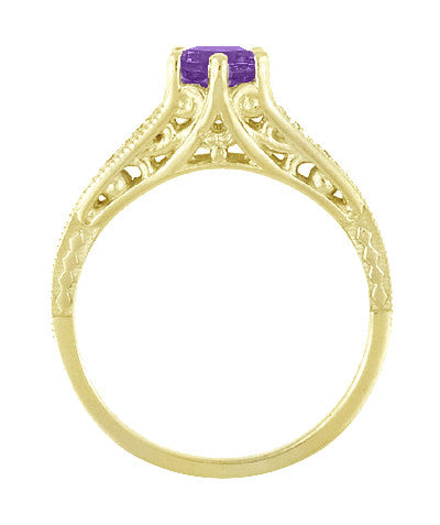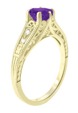 Amethyst and Diamond Filigree Engagement Ring in 14 Karat Yellow Gold