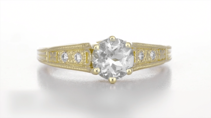 1920's White Sapphire Filigree Engagement Ring in 14 Karat Yellow Gold
