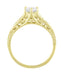 Finely crafted in 14K yellow gold, this lovely 1920's reissue antique ring design features intricately detailed engraving on the top of the band with its sides adorned with delicate pierced filigree scrollwork.