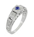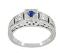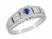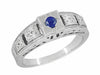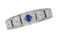 Crafted in an original antique Art Deco sapphire ring design, this lovely 1920's style blue sapphire filigree ring in 14K white gold features a natural brilliant royal blue sapphire ( September Birthstone ) of 0.15 carat in a secure low profile setting. The flush setting style will not easily "catch" on things - perfect for someone with active hands!