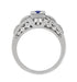 Art Deco Floral Engraved Filigree Square Top Blue Sapphire Ring in White Gold