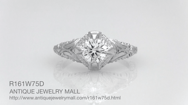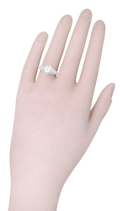 Art Deco Filigree Engraved Solitaire Diamond Engagement Ring in 14 Karat White Gold