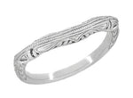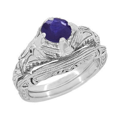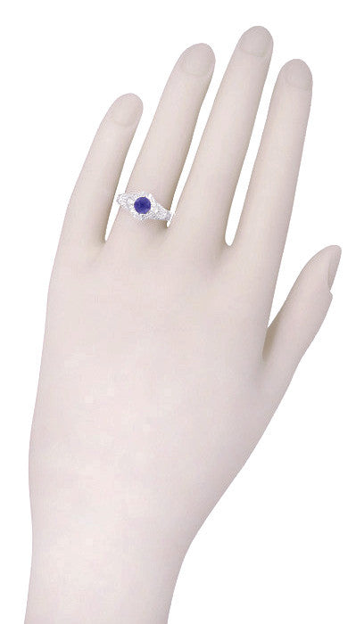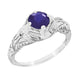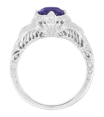 Art Deco Blue Iolite Engraved Filigree Engagement Ring in 14 Karat White Gold