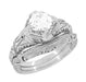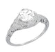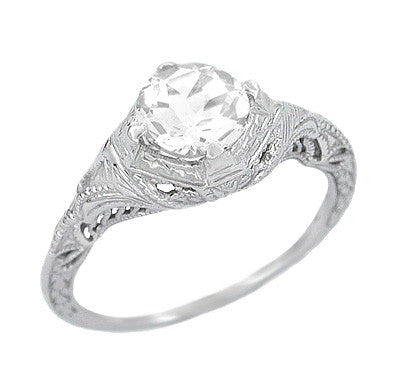 Art Deco Engraved Filigree White Sapphire Engagement Ring in 14 Karat White Gold