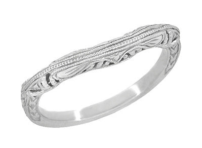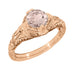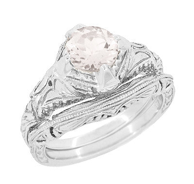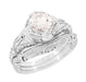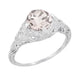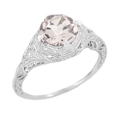 Art Deco Engraved Filigree Morganite Engagement Ring in 14 Karat White Gold