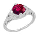 Art Deco Rubellite Tourmaline Engraved Filigree Engagement Ring in 14 Karat White Gold