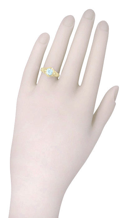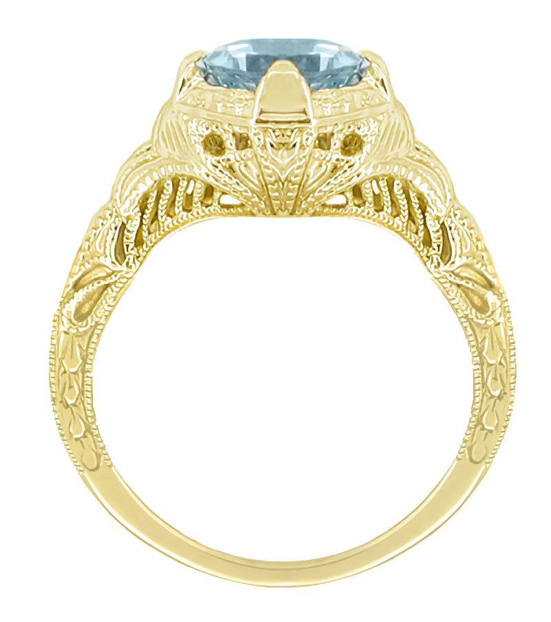 Art Deco 1.25 Carat Aquamarine Engraved Filigree Engagement Ring in 14 Karat Yellow Gold