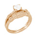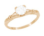 Art Deco Hearts and Clovers Solitaire Diamond Engagement Ring in 14 Karat Rose ( Pink ) Gold