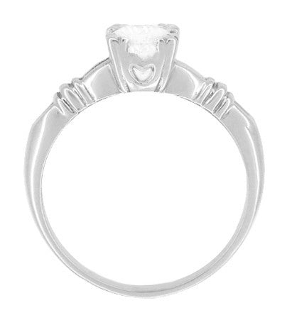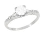 1930's Art Deco Hearts and Clovers Diamond Solitaire Engagement Ring in 14 Karat White Gold