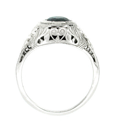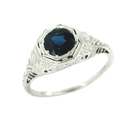 Art Deco Engraved Azalea Sapphire Filigree Ring in 14 Karat White Gold